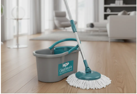 Mop giratório da marca Flash Limp (modelo Fit referenciado como MOP5010) é projetado para facilitar a limpeza doméstica, especialmente para pisos frios, sintéticos ou de madeira.