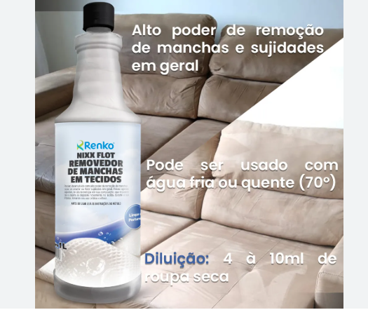 Nixx Flot Removedor Manchas Em Tecidos da Renko é um produto desenvolvido com alto poder de remoção de manchas, capaz de arrastar ou flotar, sujidades em geral.