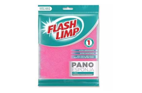 O Pano Esponja Flash Limp com 1 unidade é feito com fibras naturais de celulose e é indicado para absorver líquidos e limpar diversas superfícies, como pia, fogão e azulejos.