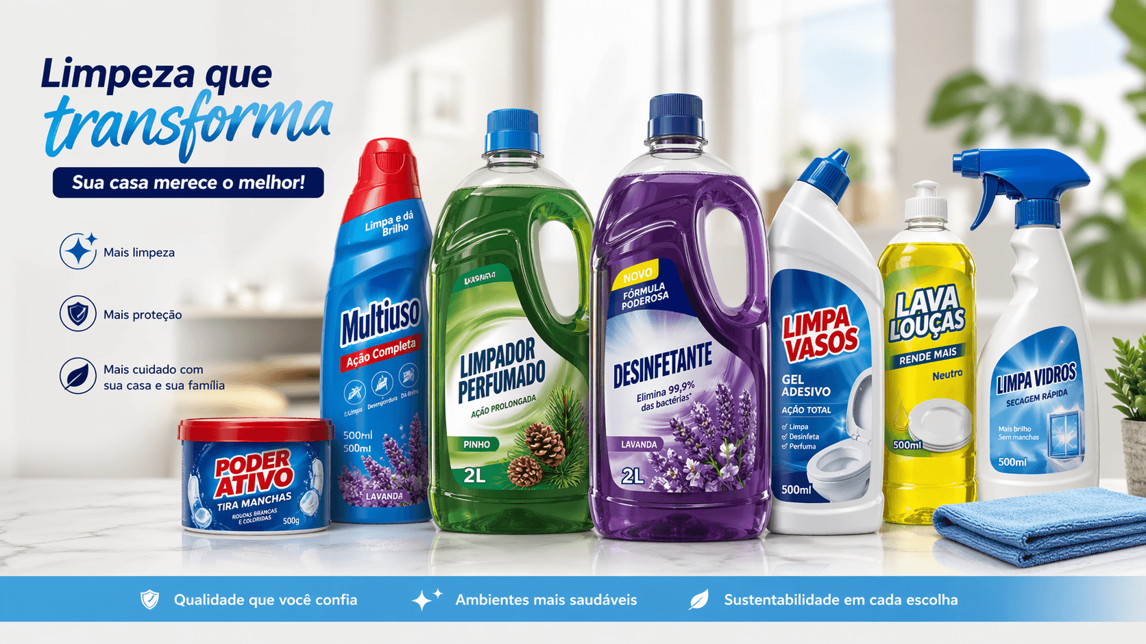 Muitas pessoas acreditam que qualquer produto de limpeza serve para todas as tarefas. No entanto, essa é uma ideia equivocada. Produtos de baixa qualidade podem conter substâncias agressivas que danificam pisos, bancadas e eletrodomésticos, além de oferecerem baixo poder de desinfecção. Já os produtos de limpeza em geral de alto padrão garantem: